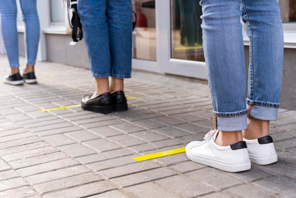Anche stando in piedi, puoi sempre respirare più profondamente e spostare la tua attenzione su qualcosa che ti faccia stare bene: